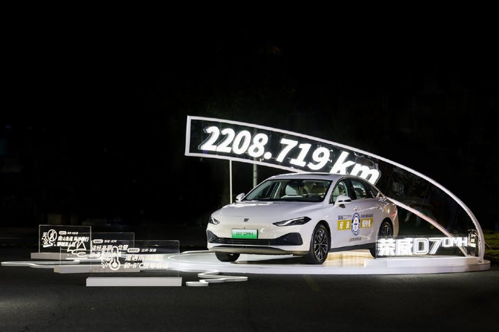 荣威D7 DMH世界冠军版于近期以2208.719km续航和2.49L/100KM的平均油耗,打破吉尼斯“插电式混合动力轿车单次满油满电行驶最远距离”世界纪录,荣膺“全球最省混动B级车”称号。除了卓越的续航和油耗表现,荣威D7 DMH世界冠军版还拥有媲美B级车的长轴距,以及云宿智能座舱、双层隔音玻璃等越级配置,并在此次新增晨曦金外饰颜色和18寸双五幅光影轮毂,以优雅、稳健的设计语言引领时代之美。